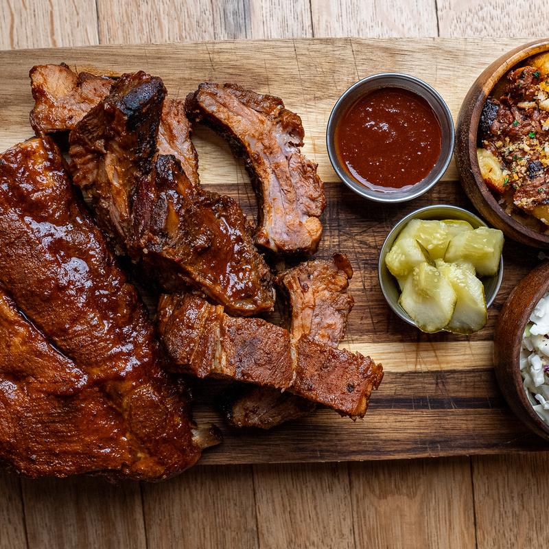 Half rack $25.00 | Full rack $46.00 • Baby back pork ribs. Available daily till sold out. comes with your choice of: Smokey jo jo (traditional BBQ), Carolina gold (mustard BBQ), spicy umami (spicy asian style BBQ). Served with fries & house coleslaw.